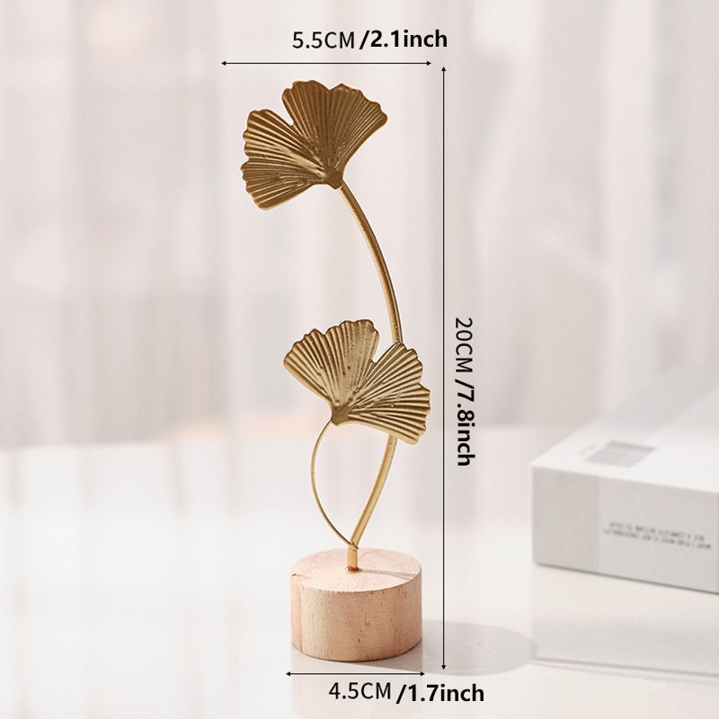 IronBliss | Scandinavisch Metalen Blad Kunstbeeldhouwwerk met Houten Voet - Creatief Huisdecor